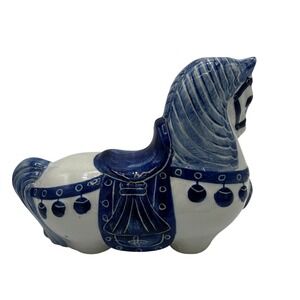 Keywords: ceramic horse, horse figurine, vintage horse, blue and white decor, Thailand decor, ceramic statue, horse collectible, equestrian decor, home decor, mantel decor, bookshelf decor, gift for horse lover, vintage figurine, blue horse, animal figurine, vintage, Nora Fenton,