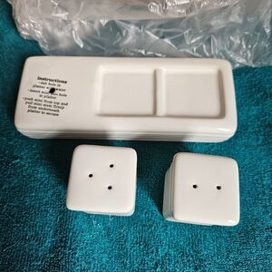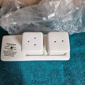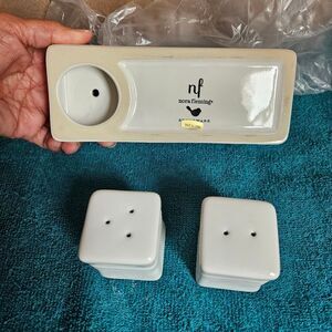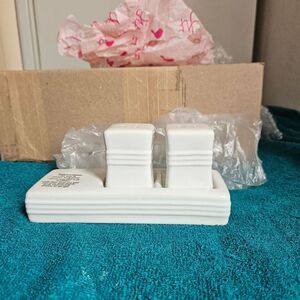 Nora Fleming Salt & pepper shaker with holder in Pinstrip Nwt