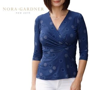 Nora Gardner Blue and White Faux Wrap Shirt - Size 8