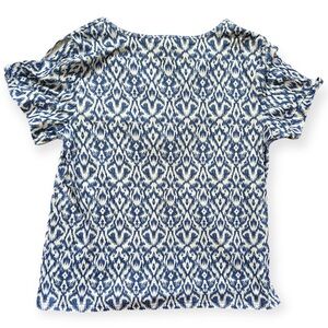 NoraCora Blue and White Buttoned Blouse with Geometric Pattern Women’s Size M