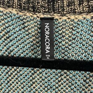 The NoraCora Wool Knit Cardigan Sweater in women's size XL features a vibrant Aztec Western design in turquoise, black, orange, and brown colors. Knit from wool, this stylish cardigan is perfect for adding a touch of bold color and intricate detailing to any outfit. The brand Noracora ensures quality and attention to detail, making this cardigan a fashionable and unique addition to any wardrobe.