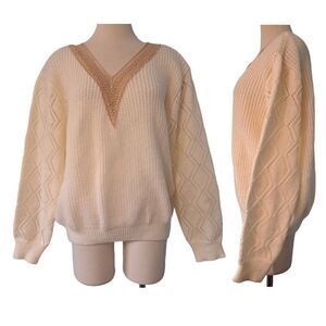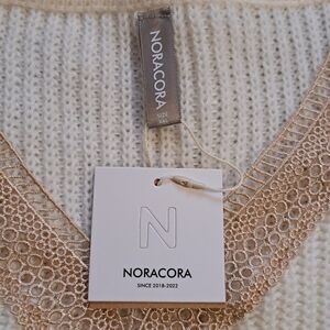 Noracoara Contrast Guipure Lace Drop Shoulder Sweater Biege Size XXL NWT