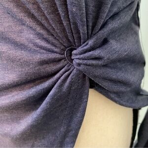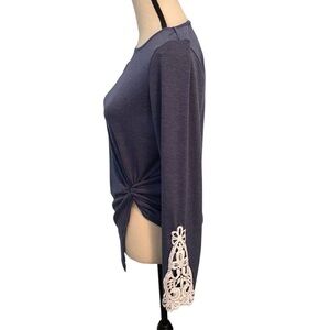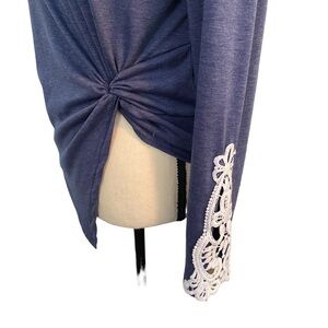 Noracora Blue Long Sleeve Side Tie Shirt Top with White Knit Sleeve Sz M