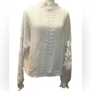 Noracora | Cable Knit & Lace Crochet Sweater (S)