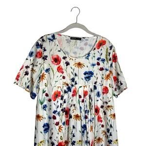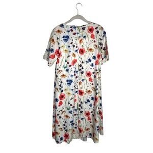 Noracora Floral Midi Dress Size Small White Multicolor Oversized Pockets EUC