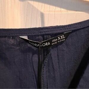 Noracora Navy Blue Vneck One Pocket Blouse Size XXL Sleeves are button as well NWT Please ask any questions
