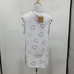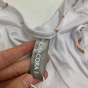 NORACORA TOP WOMENS L WHITE HEART CUTOUT COLD SHOULDER ZIP V NECK SHORT SLEEVES
