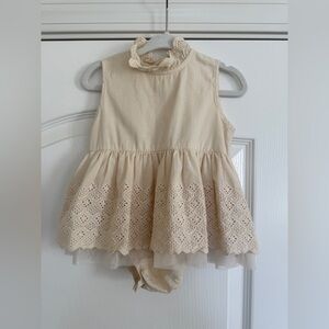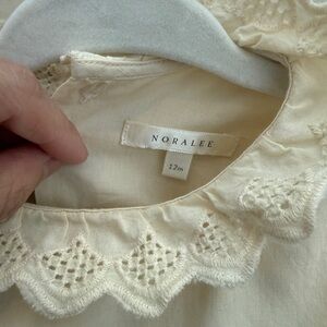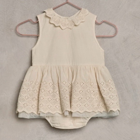 Noralee Georgia romper in color natural. Charming cream baby dress featuring intricate eyelet detailing. Ideal for formal occasions. Worn for 1st birthday photos only. In like new condition. Smoke free home.