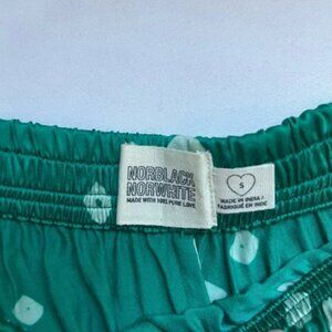 Norblack Norwhite green printed satin elastic waist wide leg cropped pants