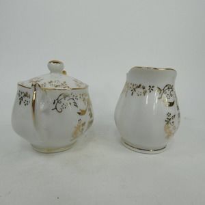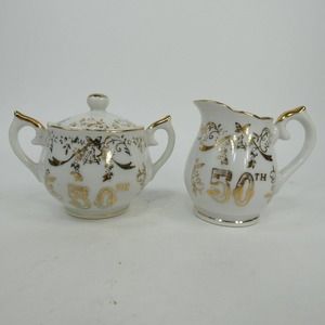 Norcrest Fine China Golden 50th Anniversary Sugar Bowl & Creamer AB689 ABJFB