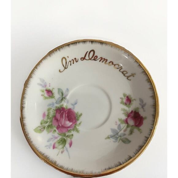 Norcrest I’m Democrat TeaCup Saucer Roses Gold 210 Tea Democratic Election