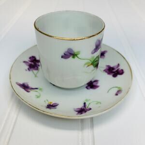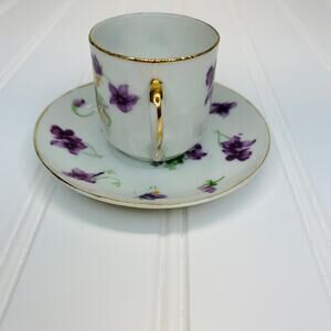 Norcrest Purple Floral Demitasse Cup adn Saucer 2" 215/161