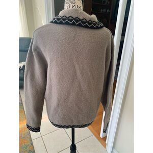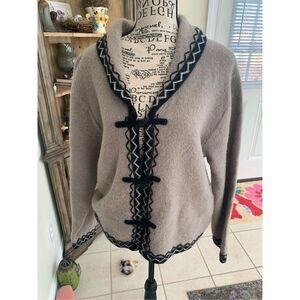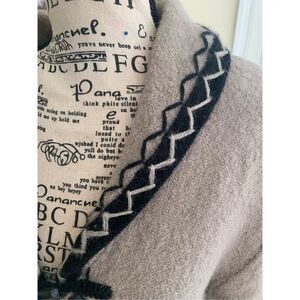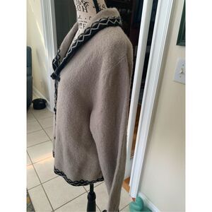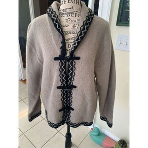 Nordic Design Tan & Black Wool Cardigan Size medium. Beautiful warm and cozy tan and black toggle closure 100% wool cardigan. Approximate measurements are 24 inches armpit to, 23 inches shoulder to hem