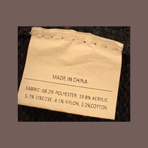 Material: 68.2% Polyester, 19.8% Acrylic, 5.7% Viscose, 4.1% Nylon, 2.2% Cotton