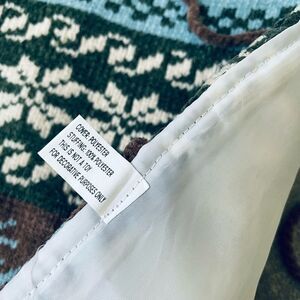 NWOT unused beautiful Nordic fair isle pattern print Christmas tree skirt. Has tie closures as shown, see pics for measurements. Soft chenille or similar fabric, lightweight, slightly padded feel. Color tones are brown, white/ivory, blue and green.