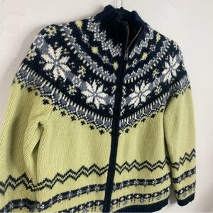 Stay cozy and stylish with this Nordic patterned women's cardigan sweater. Featuring a beautiful blend of green and black, this sweater is perfect for any casual outing. The intricate design adds a touch of elegance to your wardrobe.
