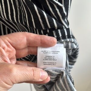 Nordic Tricot by Ivana Helsinki Mini Black White Striped Dress with 3/4 Sleeves