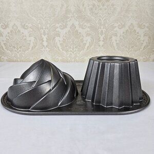 This baking pan is designed to make one large cupcake once the two baked halves are assembled. Non-stick interior for easy release and clean up. The pan is made from cast aluminum and has a 6 cup capacity. A standard 12-cup cake mix makes two Cute Cupcakes.