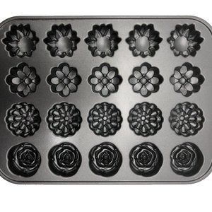 Simply pour your favorite batter into the bloom-shaped wells and create an assortment of 20 bite-size confections in four beautifully detailed designs.