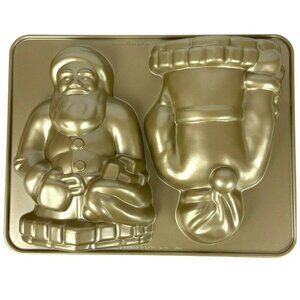 Nordic Ware Williams-Sonoma Vintage Santa Claus 3D Cake Pan Gold Aluminum USA