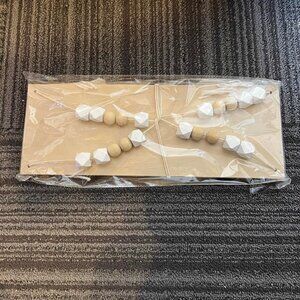 Add minimalist charm and warmth to your space with this Nordic-style wooden hanging shelf. Crafted from natural pine wood and accented with white geometric beads and tassels, this piece combines functionality with Scandinavian-inspired design.