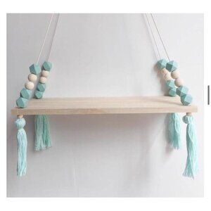 Bring a touch of Scandinavian charm to your child’s room or nursery with this Nordic-style hanging shelf featuring mint green geometric beads, natural wood accents, and coordinating tassels. The perfect combination of style and function — ideal for displaying small décor, plants, keepsakes, or toys while keeping clutter off surfaces.