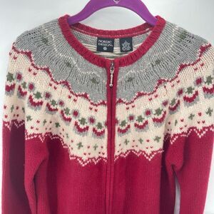 Nordic Design fair isle Full Zip Cardigan Sweater Long Sleeve Wool Red Small