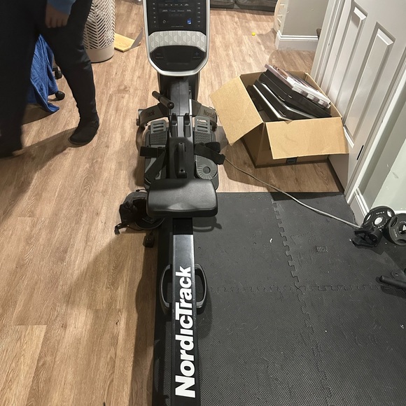 NordicTrack rowing machine in black and gray. Perfect for home workouts.ALMOST NEW. used twice. being stored in my closet.