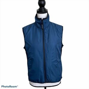 Features: Blue Nordica sleeveless vest. Side slant pockets and zipper pouch in back. Exterior nylon is lined with warm fleece. Made in Italy.