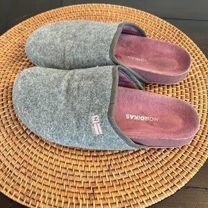 Nordic has shoes. Anatomically correct cork foot bed -comfy shoes.