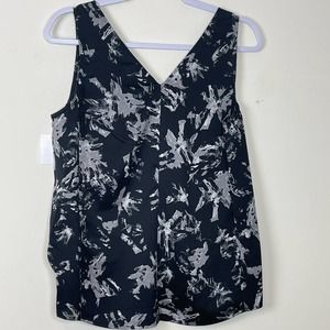 Nordstom Black Printed Sleeveless V-neck Tank Top NWT Size Small
