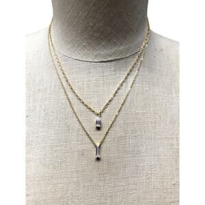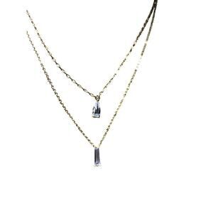 Stacking is made easy with this gleaming tiered necklace featuring two large cubic zirconia pendants on delicate chains.