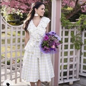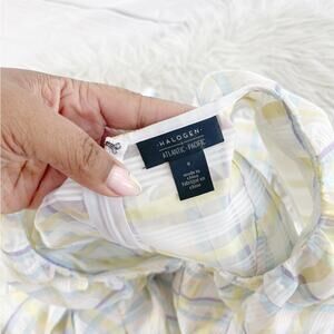 Nordstorm Halogen Atlantic Pacific Plaid Ruffle Bow Front Midi Dress Size Small