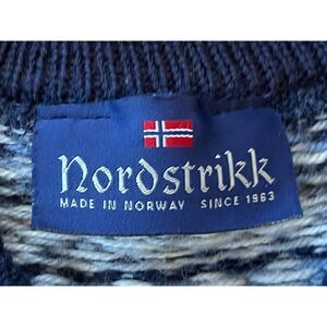 Nordstrikk Blue 100% Wool Norway Fair Isles Open Cardigan Top