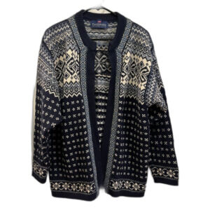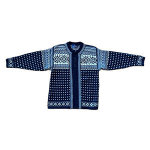 Nordstrikk Blue 100% Wool Norway Fair Isles Open Cardigan Top Women's Size Large