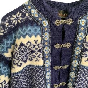 Nordstrikk Classic Norwegian Wool Metal Clasp Cardigan Sweater Small Fair Isle