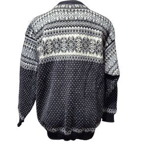 Nordstrikk wool sweater fair Isle cardigan metal hook size 1X Norway black white