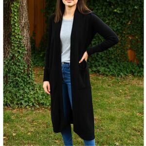Nordstrom 100% Cashmere Black Long Duster Open Front Cardigan Sweater XS