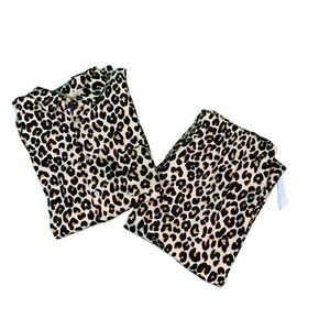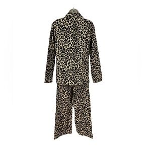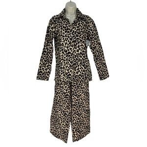 Nordstrom 100% Cotton Flannel Button Down Leopard Print PJ Set- Tan Black - Sm