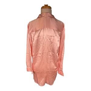 Nordstrom 100% Silk Small Long Back Pajama Top Long Sleeve Baby Pink White Trim