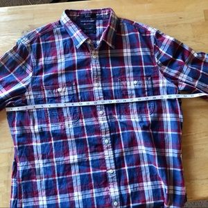 Very nice quality. Thicker than your average flannel shirt. In excellent condition. Considered a Slim fit; fitted through the chest, armholes and sides. Shipped from a smoke and pet free home. Bundle to save!