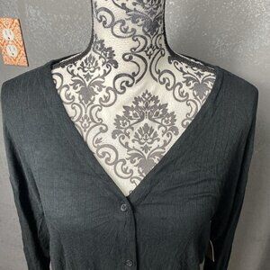 Nordstrom 14th & Union Sz Small tie front ribbed long sleeve tee black. size MP.