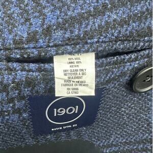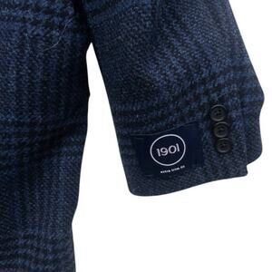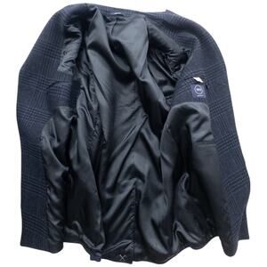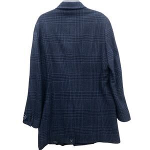 Nordstrom 1901 Men's Wool Double Breasted Overcoat Blue Glen Plaid 42R Large