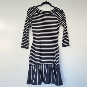 Nordstrom 1901 Navy and White Striped Knit Flare Dress Size Small
