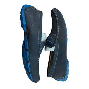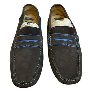 Nordstrom 1901 Penny Loafers Driving Shoes in a Taupe Tan Suede Leather with Blue Suede accents. Classic and comfortable, they easily complements your formal and casual ensembles. They feature a slip-on suede leather upper, leather footbed and rubber sole for a perfect fit and traction. Only Worm Once!