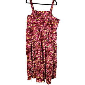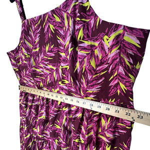 Nordstrom 2X Plus Size 100% Cotton Leaf Print Midi Tank Ruffle Dress Purple Pink
