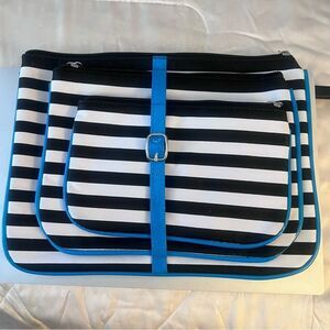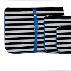 Nordstrom 3 Pc Striped Travel Bag Set, Makeup Case Cosmetic Zip Pouch