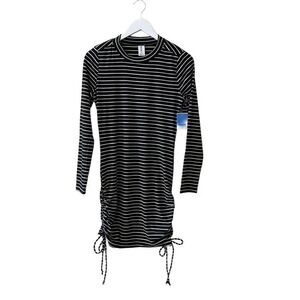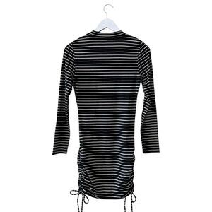 Nordstrom ABOUND Raincheck Long Sleeve Ruched Side Dress Bodycon Mini Dress Black Stripe Size M