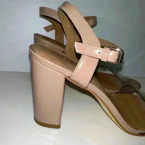 Nordstrom Abound nude patent block heel sandals with clear strap Shoe size 9