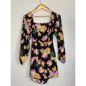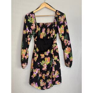 Nordstrom All in Favor Black Short Mini Tropical Floral Dress XS Party Going Out